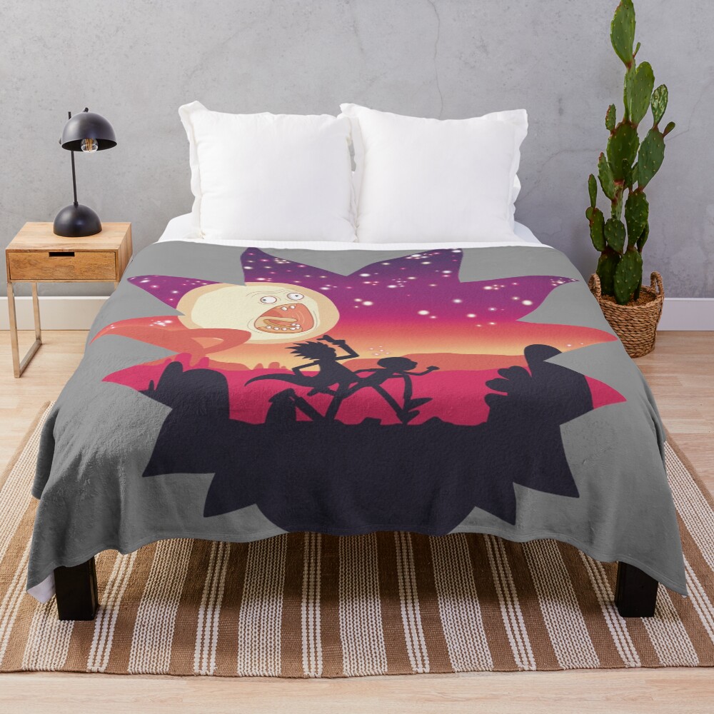 Rick And Morty Silhouette Scene Throw Blanket